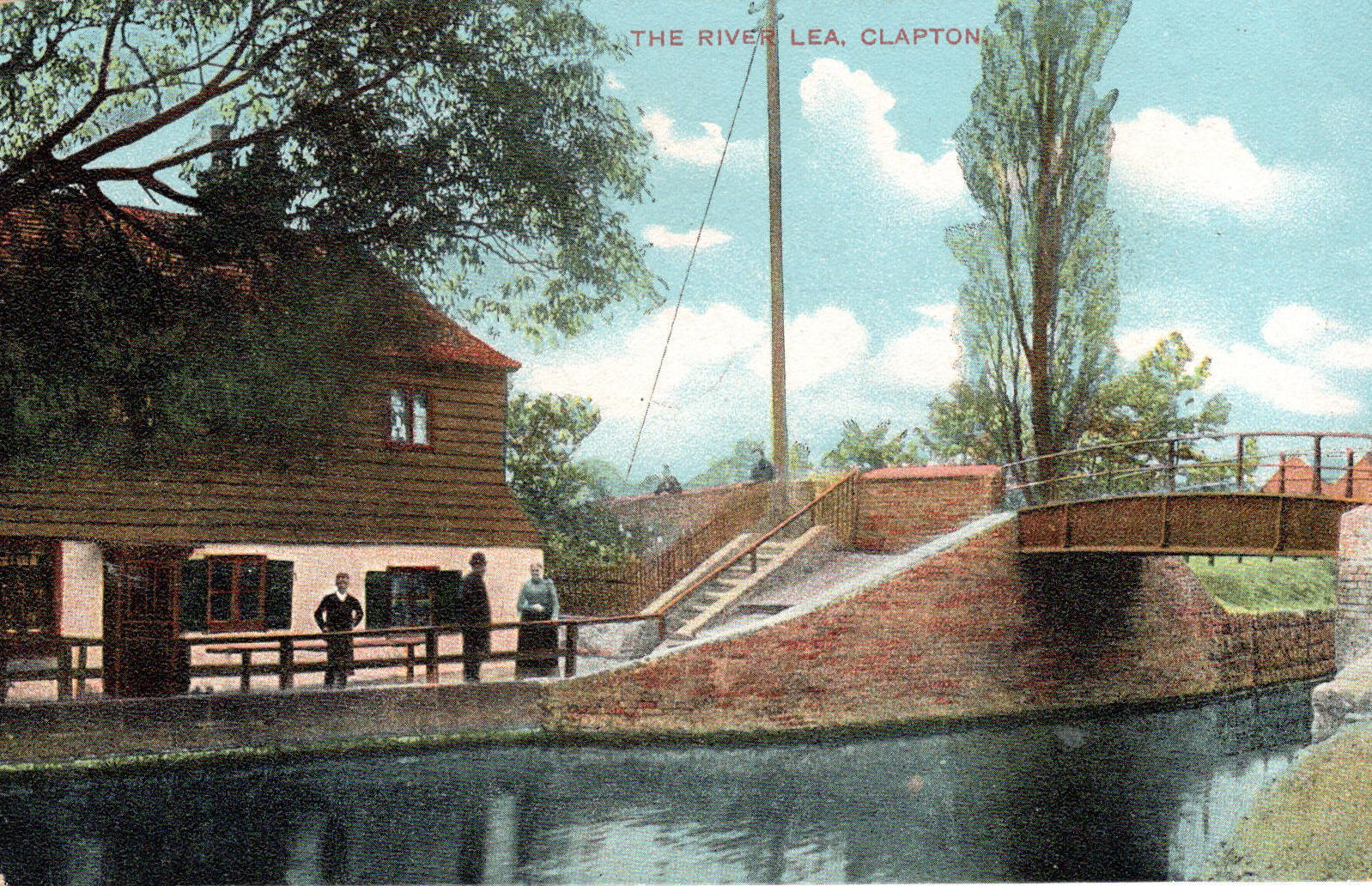 Hackney Archives P3051 The image below is one of several postcards of the bridge in my collection, this one posted on September 28th 1904 and possibly taken some fifteen years after the one above. The trees in front of the cottage have grown considerably and the tall trees to the right have been reduced to one.